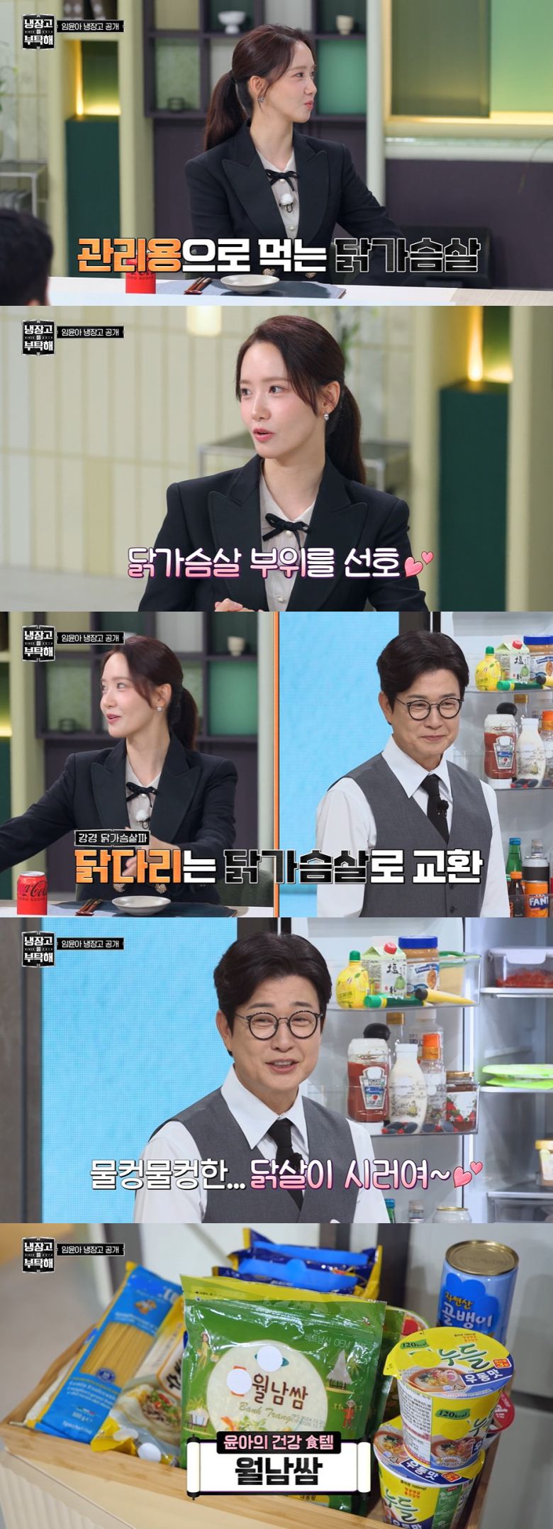 이어 윤아는 "다리는 다 양보한다. 대신 닭가슴살을 얻어온다"라고 덧붙였고, 김성주는 "물컹물컹한 닭살이 싫다"라며 윤아의 음식 취향에 공감했다.