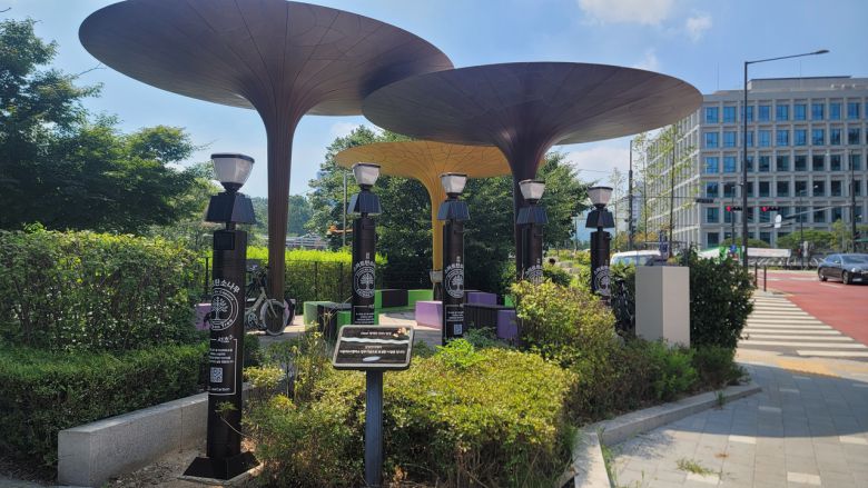 ‘서초탄소제로배움터’는 양재천 우면무지개다리 인근 데크 산책로(우면동 143-6)에 마련된 환경교육 공간으로, ‘스마트탄소나무’라는 수직형 나무 모양의 탄소 포집 장치 5대가 시범 설치돼 있다.