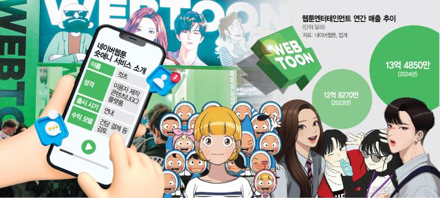 최근 숏츠, 릴스 등 숏폼 콘텐츠가 미디어 시장의 주류로 자리 잡으며 관련 시장은 빠르게 성장하고 있다. 네이버웹툰은 짧은 애니메이션을 제작하고 공유할 수 있는 사용자제작콘텐츠(UGC) 플랫폼 ‘컷츠’를 다음 달 선보인다. 기존에는 세로 스크롤 방식으로만 웹툰 콘텐츠를 즐길 수 있었다면, 이제는 애니메이션 영상 형태로 만화를 볼 수 있는 것이 차이점이다. 기존 웹툰을 요약한 콘텐츠 외에 ‘컷츠’에서만 볼 수 있는 오리지널 콘텐츠도 별도로 선보인다. 웹툰 ‘좀비딸’ 속 고양이 캐릭터 애용을 중심으로 한 일상 개그 만화 ‘김애용씨의 하루’가 컷츠 콘텐츠로 제작될 예정이다.