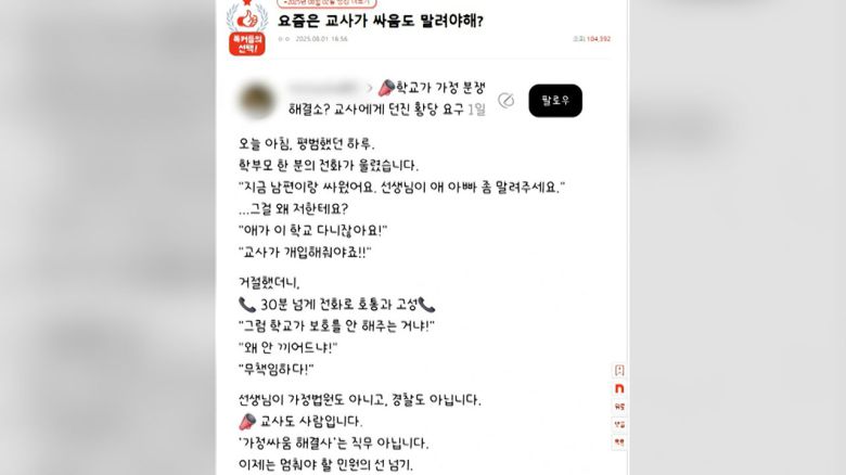 네, 최근 SNS에 교사가 부부싸움도 말려야 하는지 묻는 글이 올라왔습니다.