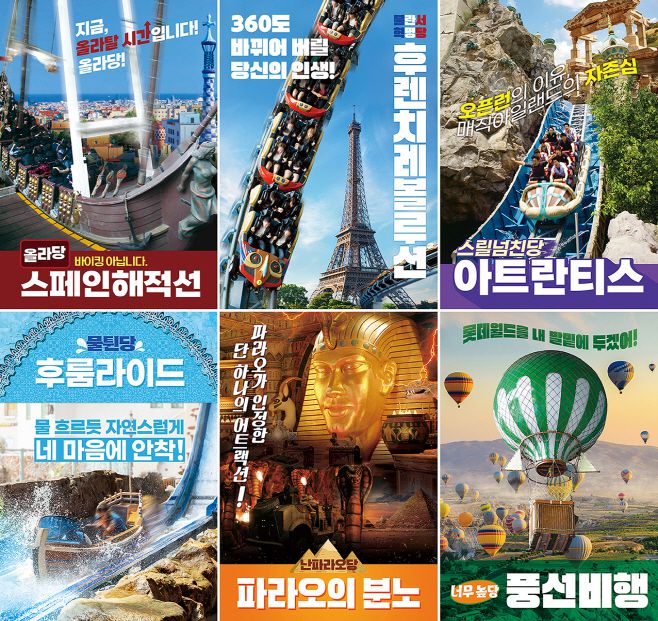 '최애 어트랙션' 후보는 △후렌치 레볼루션 △스페인 해적선 △파라오의 분노 △아트란티스 △후룸라이드 △풍선비행 6종이다. '최애 어트랙션'으로 선택 받기 위해 어트랙션들이 야심 차게 내건 가상의 공약이 있다는 점도 재미있다.