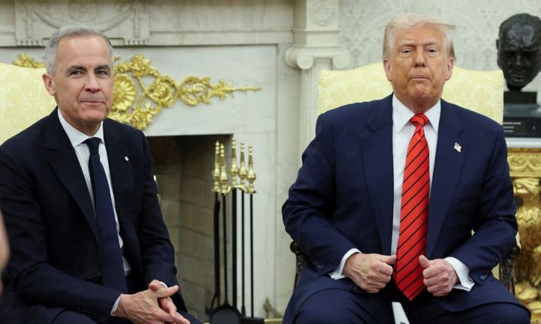 도널드 트럼프 미국 대통령과 마크 카니 캐나다 총리가 지난 5월 6일(현지시각) 미국 워싱턴 디시(D.C.) 백악관 오벌 오피스에서 회담하고 있다. 워싱턴/로이터 연합뉴스