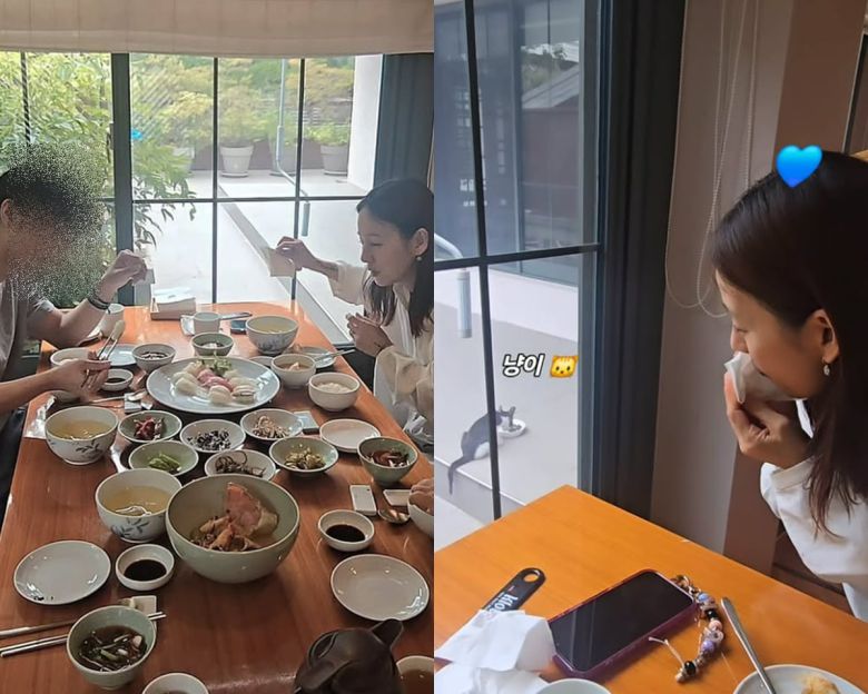 공개된 사진에서 이효리는 화장기 없는 자연스러운 얼굴과 편안한 옷차림으로 조카 앞에 앉아 따뜻한 식사 자리를 함께하고 있다.