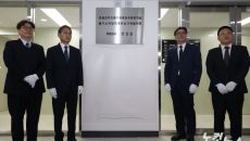 안권섭 특검을 비롯한 관계자들이 6일 오전 서울 서초구에 마련된 특검 사무실에서 현판을 제막하고 있다. (왼쪽부터 김호경 수사- 2025.12.06 11:13