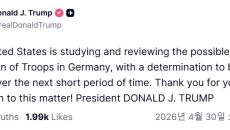 도널드 트럼프 미국 대통령이 독일 주둔 미군 감축을 검토하고 있다면서 조만간 결정이 이뤄질 것이라고 밝혔습니다. 트럼프 대통령은 소셜미디어 트루스소셜에서- 2026.04.30 07:26