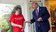 트럼프, '팁비과세' 홍보 즉석회견…'할머니 배달기사'에 100불 팁(종합)