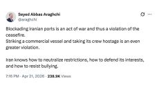 아바스 아라그치 이란 외무장관이 미국의 해상 봉쇄를 전쟁 행위로 규정하며 강력하게 규탄했습니다. 아라그치 장관은 현지시간 22- 2026.04.22 05:56