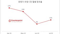 화웨이 글로벌 시장 점유율이 지난 7월 소폭 반등한 것으로 나타났다. 미국의 화웨이 제재 효과는 신규 제품이 출시되는 2019- 2019.09.25 15:29