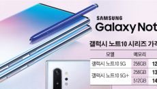 노트10 256GB 124만8500원, 노트10 플러스 256GB 139만7000원, 512GB 149만6000원 삼성전자가- 2019.08.08 11:12