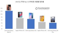 카운터포인트리서치, "톱5모델 '갤럭시 노트9·아이폰 XS·갤럭시 S10·아이폰 XR·갤럭시 A9프로 순" 올해 1·4분기 국- 2019.06.19 14:42