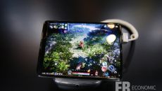 갤럭시폴드로 검은사막 모바일이 시연되고 있다. 사진=황대영 기자 [이코노믹리뷰=황대영 기자] 삼성전자가 매진 행렬을 잇는 갤럭- 2019.12.01 16:43