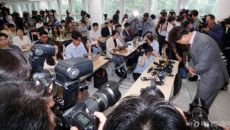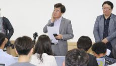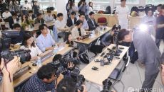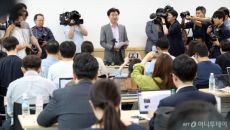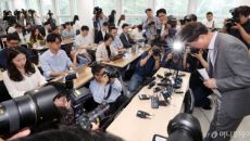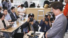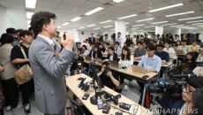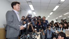 [사진] 기자회견서 땀 흘리는 이상무 참좋은여행 전무이사