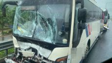 빗길에 하마터면…초등생 160명 태운 수학여행 버스 삼중추돌