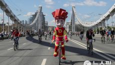 [사진] 모스크바 사이클 축제에서 캐릭터 탈 쓰고 자전거 타는 시민