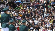어린이날을 맞아 5일 오후 서울 용산구 전쟁기념관 평화광장에서 열린 '어린이날 문화축제'에서 국군 의장대가 음악에 맞춰 의장- 2019.05.05 16:04