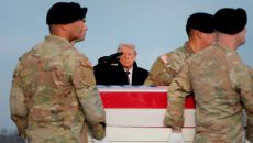 ▲ 시리아에서 피격 사망한 미군 병사 귀환·운구 행사에 참석한 트럼프 미국이 시리아의 이슬람 극단주의 세력 IS(이슬람국가)를- 2025.12.20 09:39