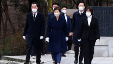 [서울=뉴스핌] 황준선 기자 = 박근혜 전 대통령이 24일 오전 서울 동작구 국립서울현충원에서 부친인 박정희 전 대통령 묘역을- 2022.03.24 10:01