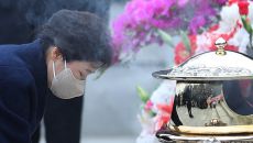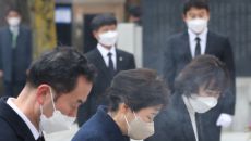 [서울=뉴스핌] 황준선 기자 = 박근혜 전 대통령이 24일 오전 서울 동작구 국립서울현충원에서 부친인 박정희 전 대통령 묘역을- 2022.03.24 09:40
