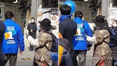 (서울=연합뉴스) 고동욱 기자 = 더불어민주당 송영길 대표가 7일 서울 신촌 유세 도중 70대 남성이 내려친 둔기에 머리를 가- 2022.03.07 16:21