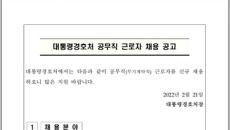 (대구=연합뉴스) 김선형 기자 = 대통령 경호처가 박근혜 전 대통령 사저 인근 경호동의 근로자 채용공고를 냈다. 대통령 경호처- 2022.02.22 17:57