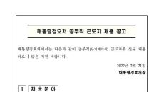 대통령 경호처가 박근혜 전 대통령 사저에서 청소·요리를 담당할 근로자 채용공고를 올렸다. 대통령 경호처는 지난 20일 홈페이지- 2022.02.22 19:25