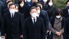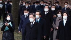 [서울=뉴스핌] 이형석 기자 = 이재명 대선후보가 14일 서울 동작동 서울현충원에서 박정희 전 대통령 묘소 참배를 위해 입장하- 2022.02.14 11:08