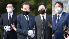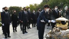 (서울=연합뉴스) 이유미 홍준석 기자 = 국민의힘 지도부와 대권주자들이 26일 박정희 전 대통령의 42주기를 맞아 동작구 국립- 2021.10.26 09:20