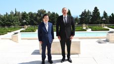 (바쿠=연합뉴스) 전명훈 기자 = 아제르바이잔을 공식 방문 중인 박병석 국회의장은 19일(현지시간) 일함 알리예프 대통령, 사- 2021.08.20 10:51