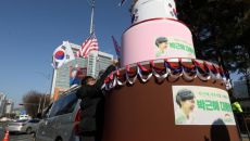박근혜 '칠순' 축하…병원앞 초대형 3단 생일케이크 등장