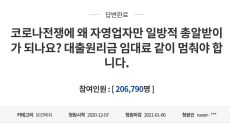 靑 '코로나로 자영업 총받이' 청원에 "피해 신속히 지원" 답변