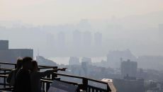 입동인 7일 오전 서울 중구 남산 산책길에서 시민들이 미세먼지로 뿌옇게 된 시내를 바라보고 있다. 이날 오전 서울 등 수도권- 2025.11.08 01:40