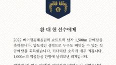 文대통령, 황대헌 선수에 축전…"누구도 빼앗을 수 없는 금메달"