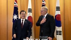 모리슨 총리 "한반도 평화 프로세스 지지 재확인" [더팩트ㅣ허주열 기자] 호주를 국빈 방문 중인 문재인 대통령이 13일 스콧- 2021.12.13 17:45