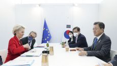 文대통령 “EU 덕분에 전국민 70% 접종 완료”… EU집행위원장 “양자 교류 확대”