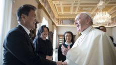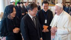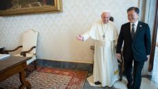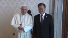 교황, 문 대통령 만나 “북한과 대화 노력 계속되길”…‘종전선언’ 논의는 안해