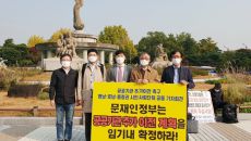 (세종=연합뉴스) 이은파 기자 = 충청과 영호남 시민사회단체들은 26일 청와대 앞에서 기자회견을 열어 "문재인 정부는 공공기관- 2021.10.26 15:50