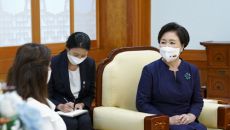 (서울=연합뉴스) 임형섭 기자 = 문재인 대통령의 부인 김정숙 여사는 25일 오후 국빈방한 중인 이반 두케 콜롬비아 대통령 부- 2021.08.25 17:52