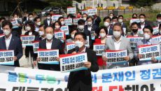 국민의힘, 청와대 앞 긴급 의총 "文, 국민 앞에 낱낱이 사과하라"