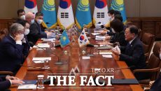 토카예프 "한국 관련 프로젝트들 실행 원활하도록 최대한 협조" [더팩트ㅣ허주열 기자] 문재인 대통령이 17일 한국·카자흐스탄- 2021.08.17 20:33