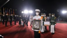 홍범도 장군, 100년 만의 귀환…文, 최고 예우로 직접 맞아