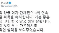 文 "女양궁 9회연속 '금메달' 참으로 장하고 자랑스럽다"