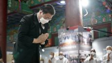 [경향신문] 문재인 대통령이 23일 오후 전북 김제시 금산사에 마련된 월주 스님 분향소를 찾아 조문했다고 박경미 청와대 대변인- 2021.07.23 19:23