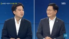[헤럴드경제=정윤희·이원율 기자]송영길 더불어민주당 대표와 이준석 국민의힘 대표가 21일 TV토론에서 김경수 경남도지사 유죄- 2021.07.21 14:33