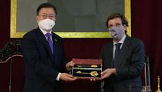 15일 공식환영식으로 국빈방문 일정 시작 마드리드 시청 방문... 황금열쇠 전달받아 【송주용 기자·마드리드(스페인)=공동취재단- 2021.06.16 07:43