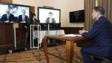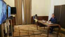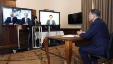 [이데일리 김영환 기자] 문재인 대통령은 15일(현지시간) 백신 제조업체 큐어백사(社)의 프란츠 베르너 하스 대표와 화상 면담- 2021.06.15 17:15
