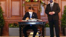 [머니투데이 정진우 기자, 비엔나(오스트리아)=공동취재단 ] [the300]오스트리아 국빈 방문...비엔나 시청 방문해 방명록- 2021.06.15 00:36