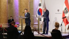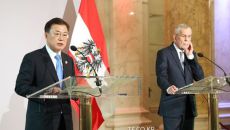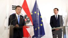[머니투데이 정진우 기자, 비엔나(오스트리아)=공동취재단 ] [the300](상보)한-오스트리아 정상회담 후 기자회견 오스트리- 2021.06.14 19:25