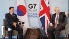 문재인 대통령과 보리스 존슨 영국 총리가 G7 정상회담을 계기로 이뤄진 양자 회담에서 한반도 평화 프로세스 필요성에 공감했습니- 2021.06.13 19:30