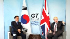 영국 콘월·서울 공동취재단=CBS노컷뉴스 조은정 기자 문재인 대통령과 보리스 존슨 영국 총리가 13일 오전(현지시간) 정상회담- 2021.06.13 18:57