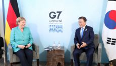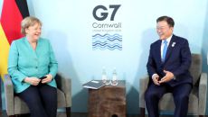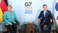 [헤럴드경제=콘월 공동취재단·박병국 기자]영국에서 열리는 G7 정상회의에 참석 중인 문재인 대통령이 12월(현지시간) 앙겔라- 2021.06.13 00:08